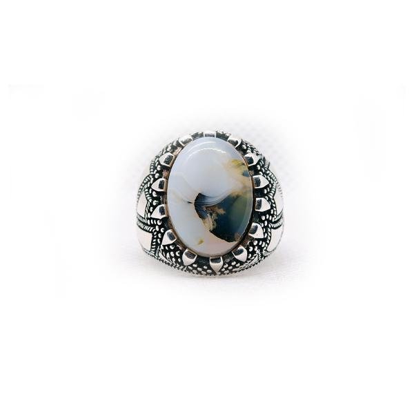 العقيق الشجري (Moss Agate)أبيض شبه شفاف مع نقوش تشبه الطحالب